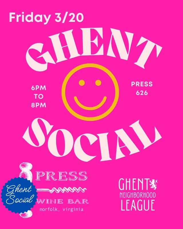 Join us for our Monthly Ghent Social on Friday, March 20th from 6–8 PM at Press 626. There is no agenda, no program, just neighbors gathering, catching up, and enjoying a relaxed evening together in one of Ghent’s favorite spots.