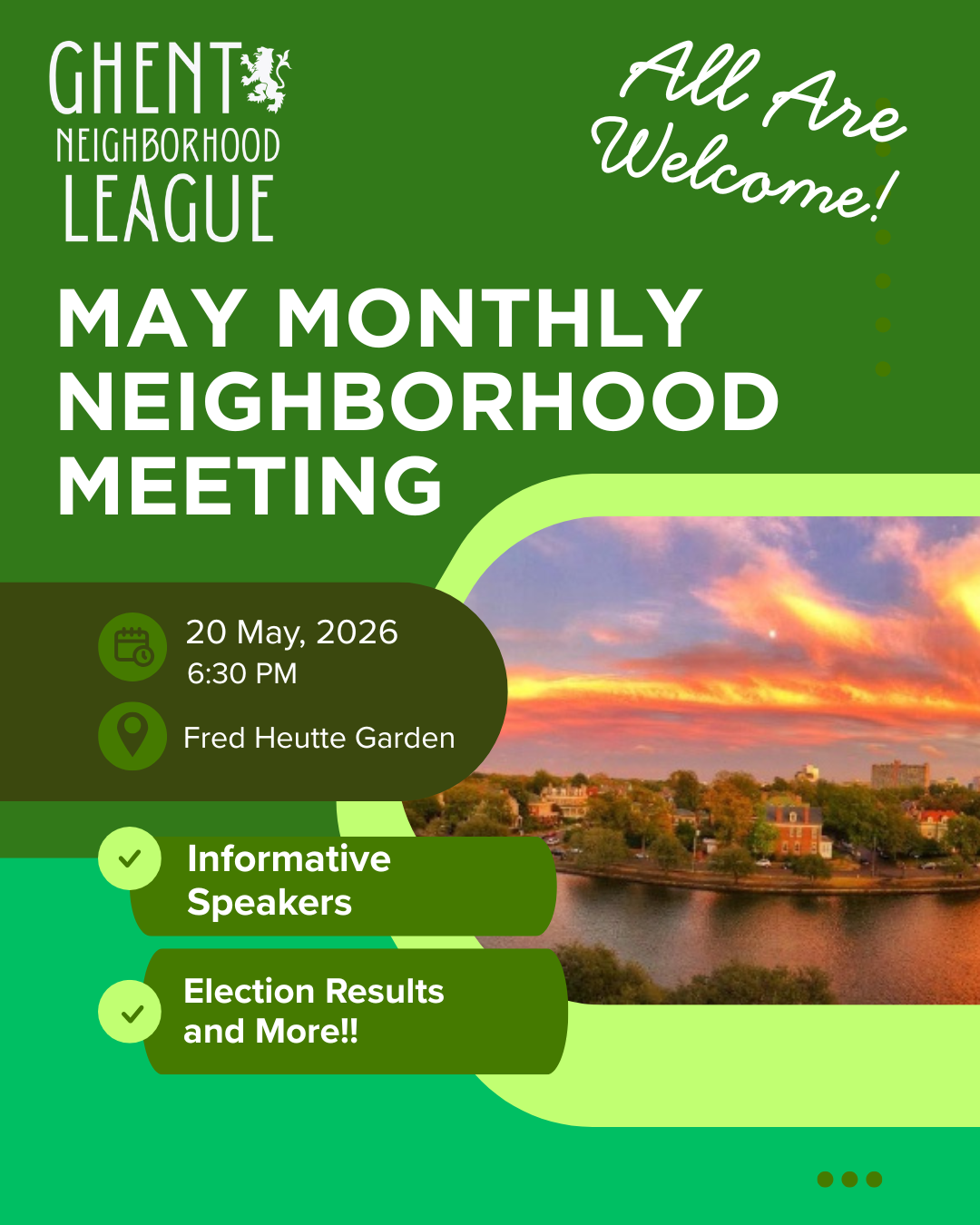 Join the Ghent Neighborhood League and be part of the energy, advocacy, and community spirit that make Ghent such a special place to live. Stay connected with neighborhood news, meet your neighbors, support local projects and events, and help shape the future of our historic community. Whether you want to volunteer, stay informed, or simply belong, there is a place for you here.